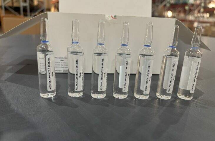 Etanol farmacêutico que é usado como antiduto para casos de intoxicação por metanol (Foto: Dvigulação / SES)