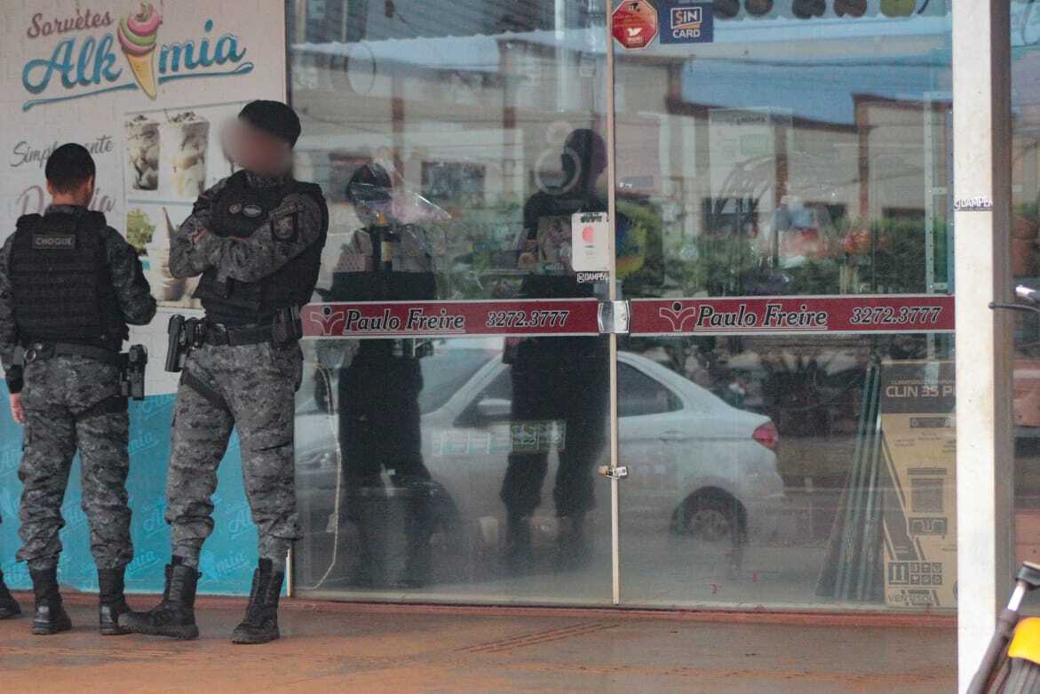 Em Sidrolândia, a 71 km de Campo Grande, equipes do Batalhão de Choque cumprem mandados na Livraria Paulo Freire, que também comercializa materiais para informática e escritório. São duas lojas na cidade, que ficam a um quilômetro de distância. A razão social da livraria é “Pedro Luiz Ribeiro Ruano Ltda”, nome do proprietário.