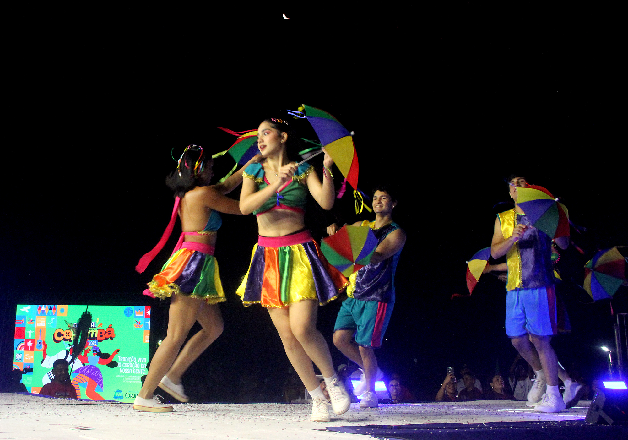 Uma multidão se concentrou na praça central para acompanhar o evento e torcer para seus candidatos na disputa da concorrida eleição da Corte de Momo, com animação da bateria da Escola de Samba Mocidade da Nova Corumbá e Banda Manoel Florêncio. Foi uma noite de gala e declaração de amor ao melhor carnaval do interior do Brasil, com muito samba no pé.