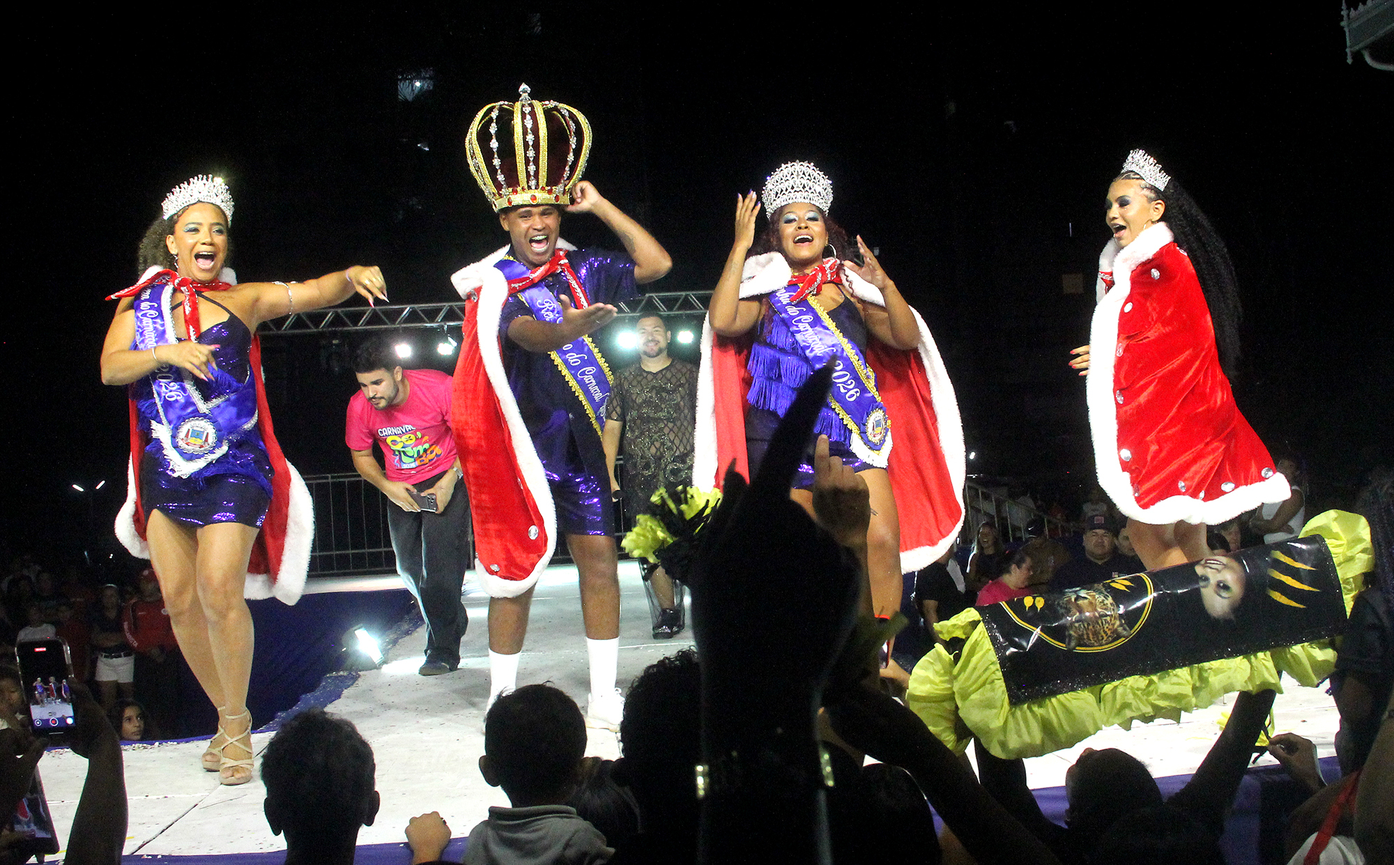 Com 239,7 pontos, o carnavalesco Robson Junior foi eleito Rei Momo entre quatro candidatos. “Agora vamos festejar com responsabilidade”, sentenciou ele, pela primeira vez concorrendo ao título. Josielly Silva, moradora do bairro Popular Velha e torcedora do Flamengo, foi declarada a rainha, com 228,7 pontos em uma disputa com outras 13 candidatas.