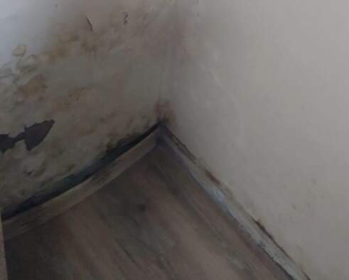 Neste canto, até o rodapé descolou da parde úmida (Foto: Reprodução)