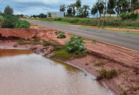 Água empossada na beira de rodovia MS-141, em Ivinhema, por conta da erosão no fim do ano passado (Foto: Divulgação)