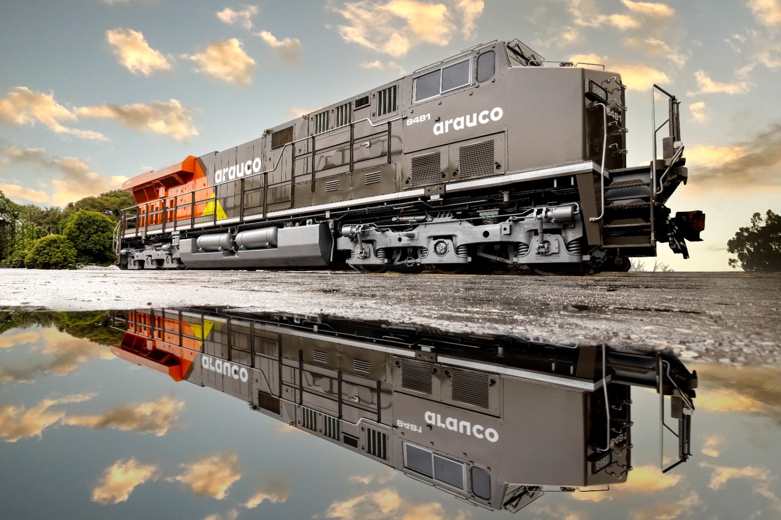 Locomotiva que irá operar na ferrovia em construção em Inocência integra sistema logístico voltado ao transporte de celulose em larga escala.