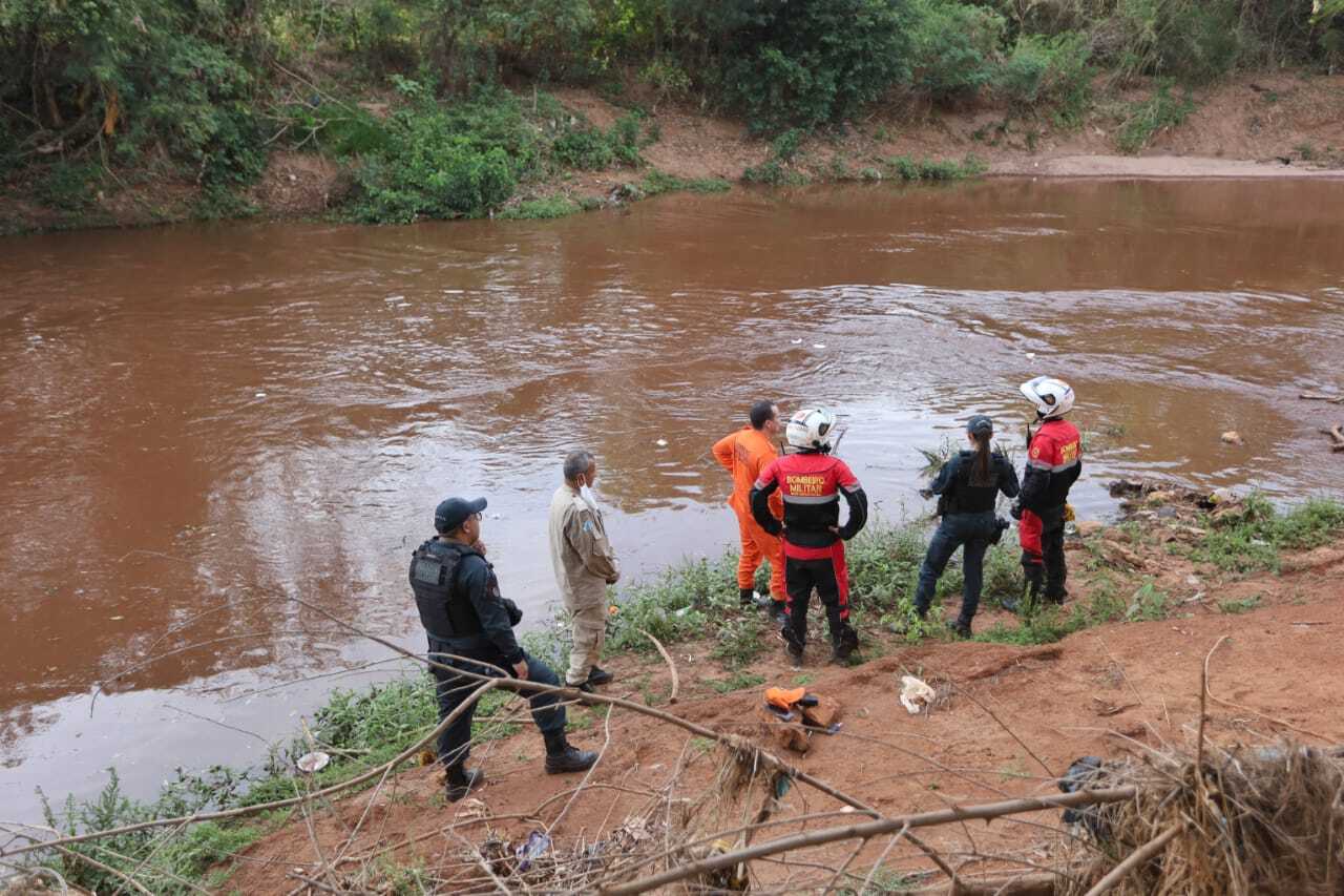 Equipes do Corpo de Bombeiros fazem buscas pelo corpo de um homem que foi arrastado pela correnteza do Rio Anhanduí, nesta sexta-feira (17). O cadáver foi visto por moradores que acionaram os militares por volta das 15h40 e agora desapareceu.