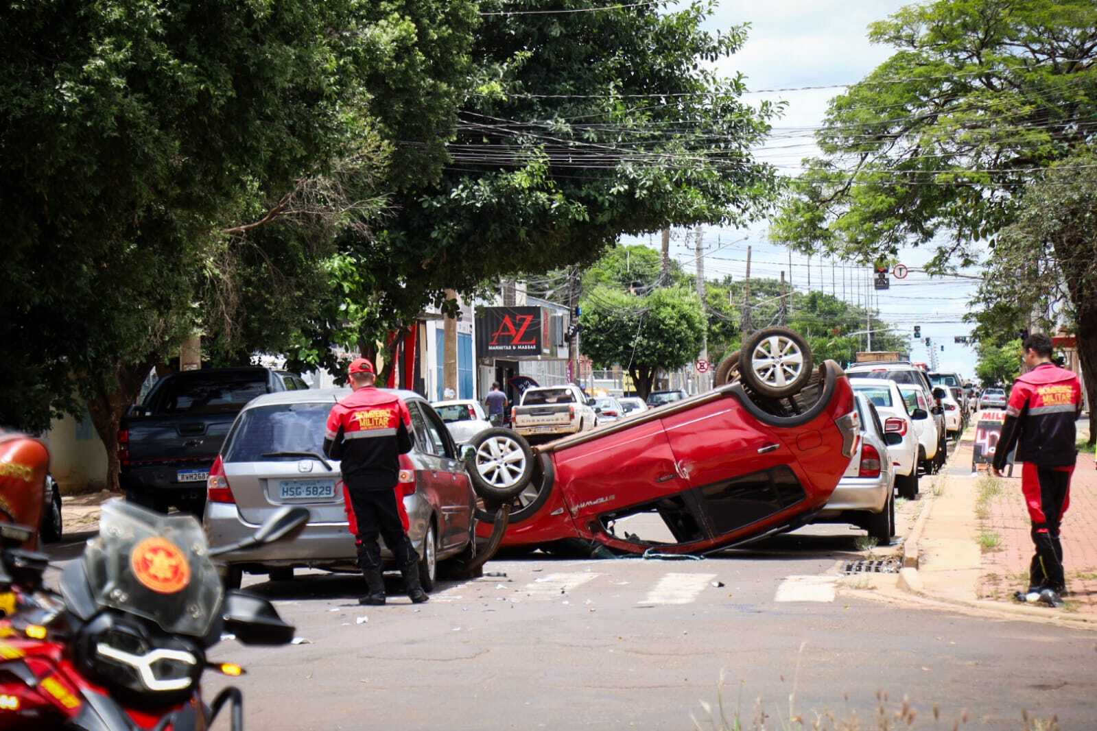 Capotagem após batida entre carros trava trânsito na Vila Carvalho