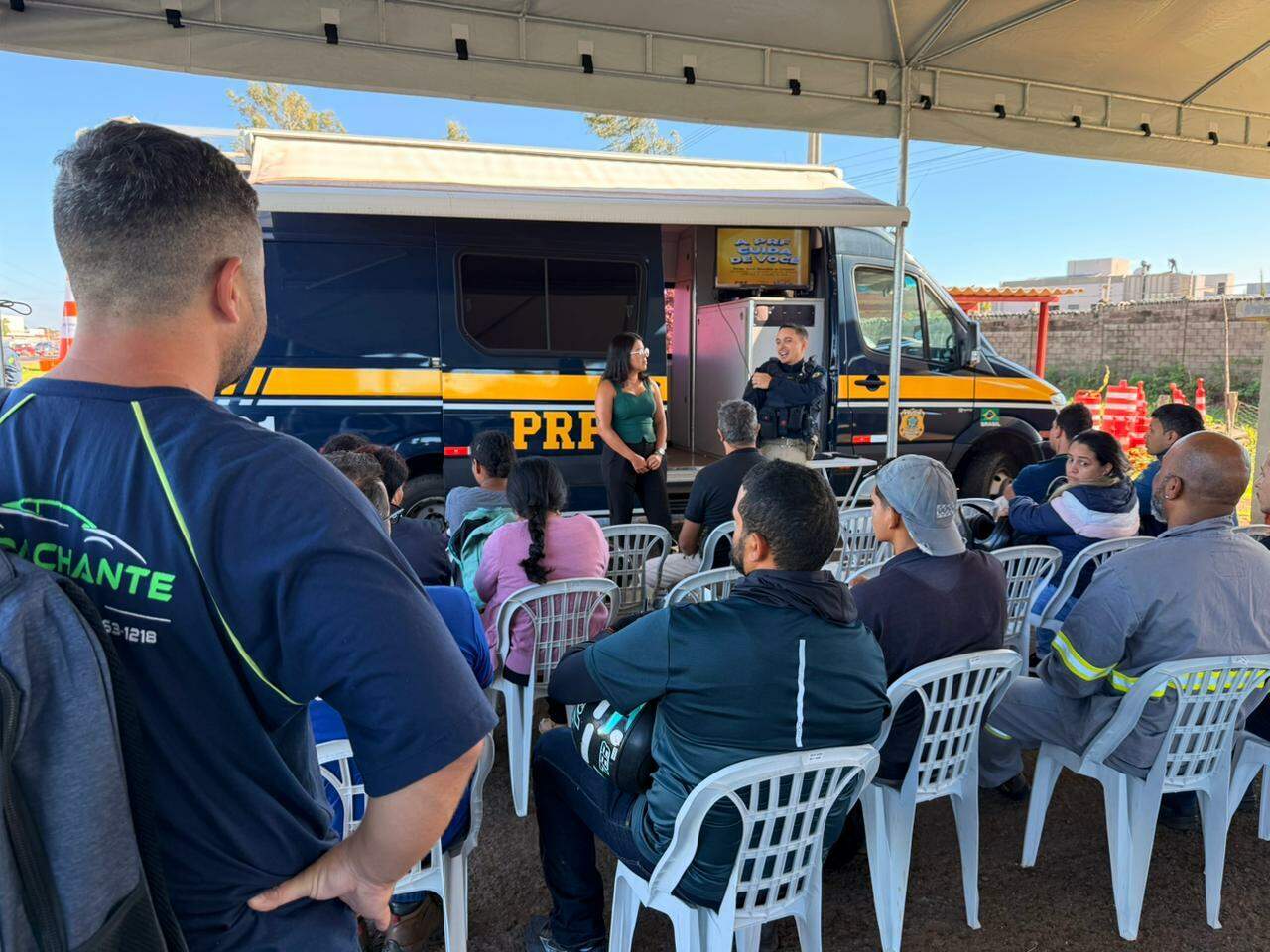 Até às 8h50, cerca de 60 condutores - a maioria pilotos - já haviam participado das orientações. Em cada abordagem, grupos de até 20 motoristas eram convidados a assistir ao chamado “cinema rodoviário”, com vídeos e mensagens de alerta.