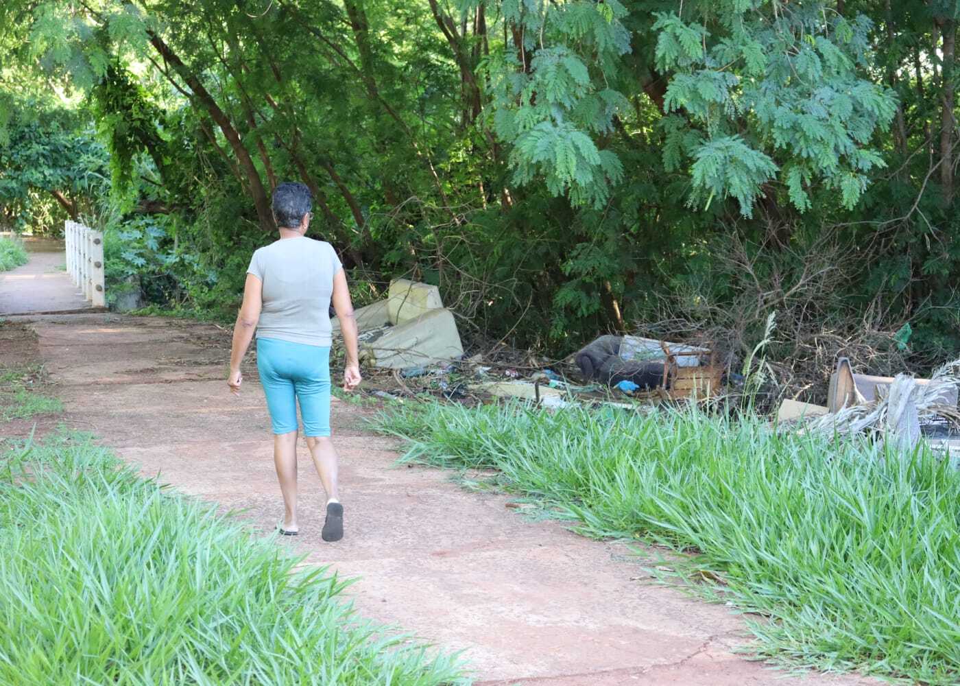 O córrego que corta o bairro é onde a mudança aparece primeiro. Em vez da água cercada por vegetação, moradores encontram sacolas, móveis jogados, animais mortos e acúmulo constante de entulho. “Tem época que tiram quatro ou cinco caminhões de lixo daqui e no outro dia está igual”, relata Doraci Parecido Oliveira, moradora há 30 anos. Ela diz que já viu de tudo sendo descartado ali. “A natureza beneficia todo mundo, mas se ninguém cuidar, os passarinhos vão embora.”