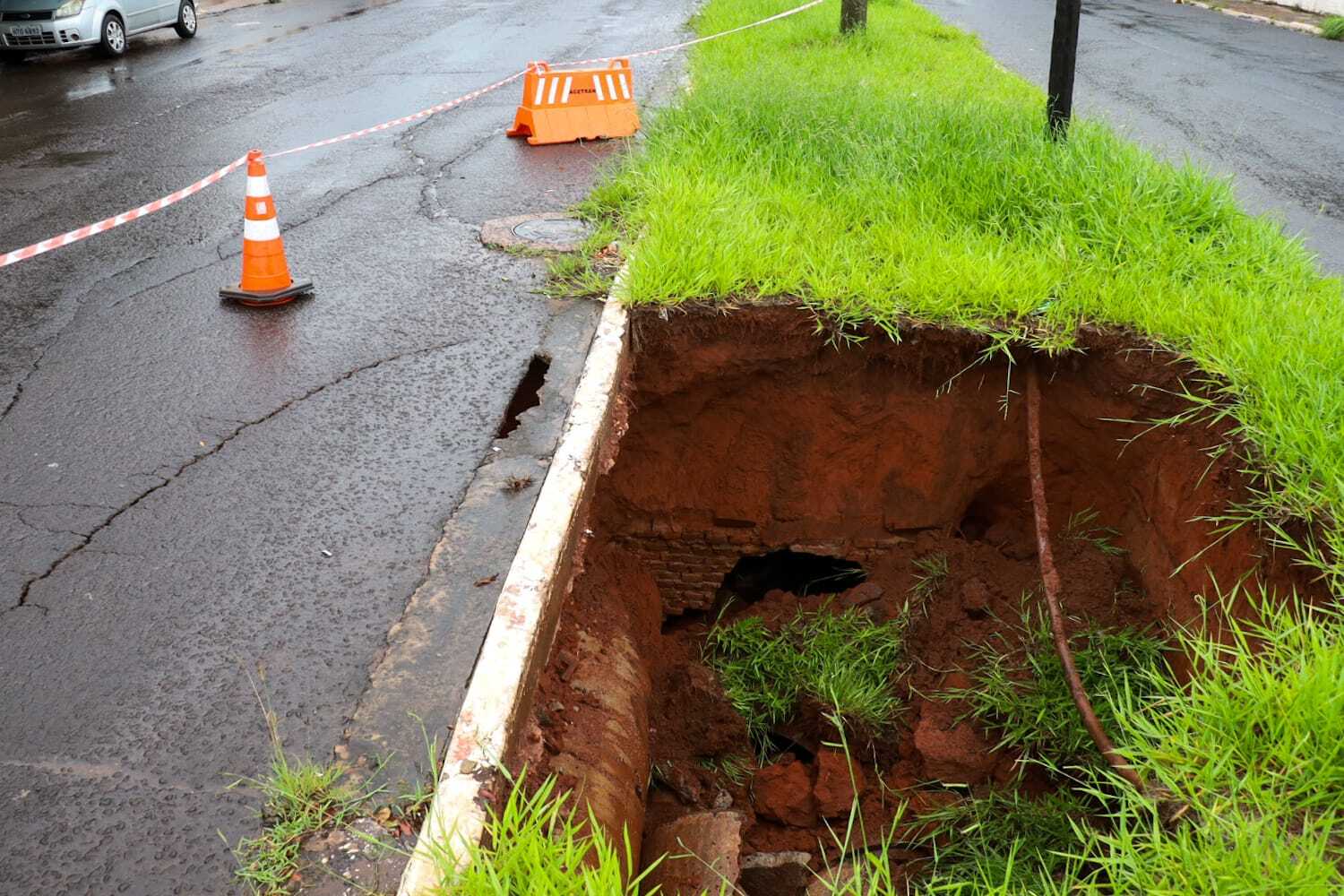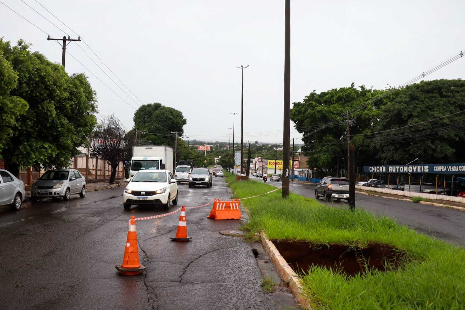Uma cratera se abriu no canteiro central da Avenida Manoel da Costa Lima, em Campo Grande, expondo tubulações de concreto danificadas e um cano de PVC. O problema começou a se formar na tarde de segunda-feira (15), segundo relato de uma funcionária local. A Secretaria Municipal de Infraestrutura e Serviços Públicos (Sisep) interditou parcialmente a via e providenciou a sinalização com cones e fitas zebradas. Apesar da interdição, não houve registro de congestionamento no local.