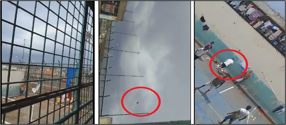 Imagens captadas durante a investigação, mostram arremessos e um dos responsáveis pelo esquema resgatando o material.