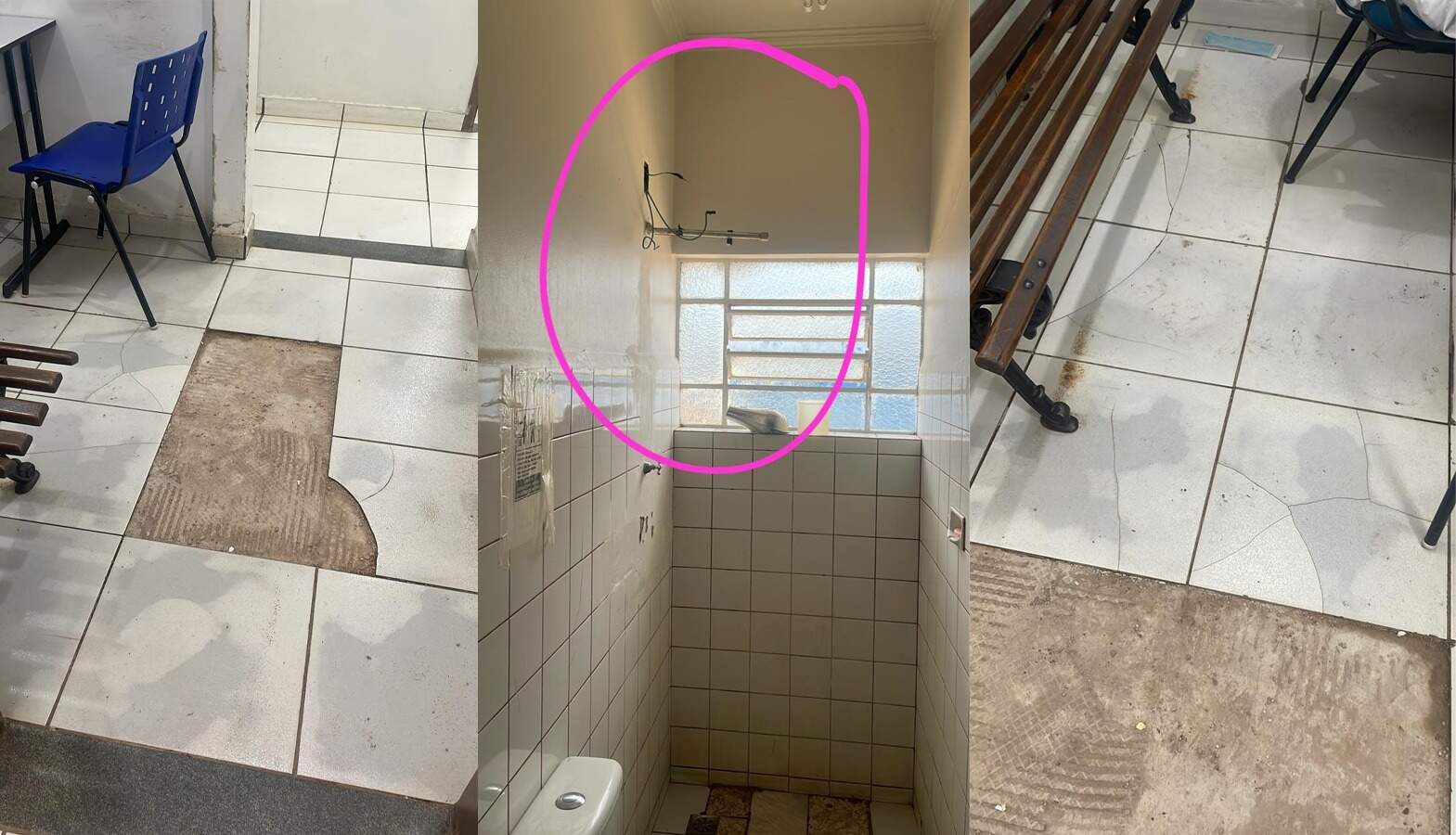 Os profissionais também apontaram que não há chuveiro para pacientes tomarem banho e que pisos quebrados oferecem risco de queda no CRS Cophavilla.