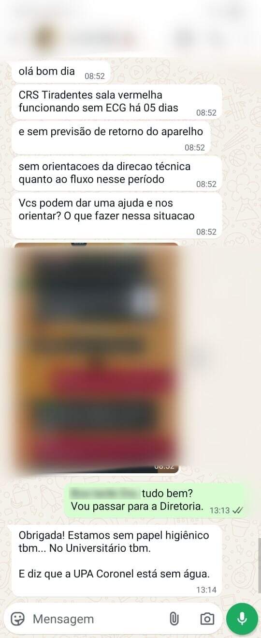 Nesta quarta-feira (17), o Sinmed (Sindicato dos Médicos de Mato Grosso do Sul) listou que não havia papel higiênico na UPA (Unidade de Pronto Atendimento) Universitário e que falta fornecimento de água pela rede na UPA Coronel Antonino.