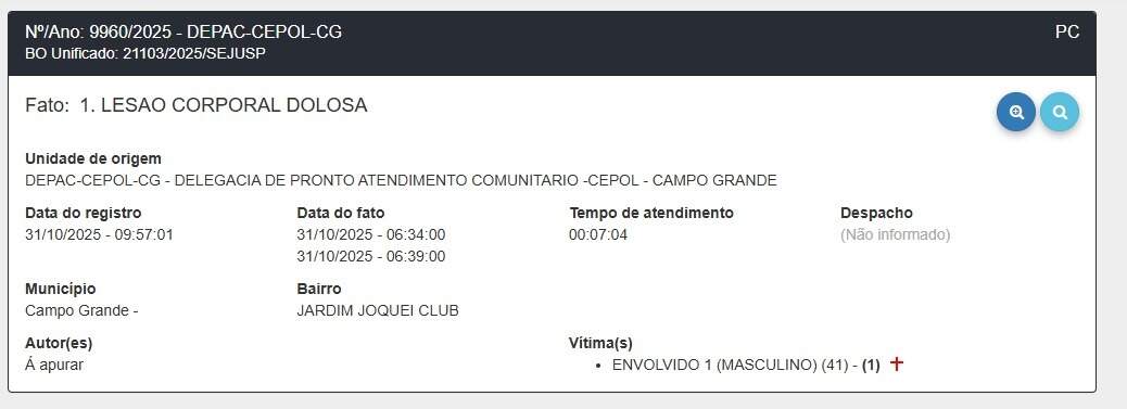 Em Campo Grande, um homem de 41 anos em situação de rua foi encontrado ferido após ser espancado no Jardim Jóquei Club. Ao ser socorrido pelo Samu e levado à Santa Casa, descobriu-se que estava registrado como morto no sistema da Secretaria de Justiça e Segurança Pública. O erro foi identificado durante checagem de rotina no Cadeg, sistema usado pelas forças de segurança, onde o nome da vítima aparecia marcado com uma cruz, símbolo que indica óbito. O caso foi registrado na Depac Cepol e encaminhado para correção cadastral e investigação da falha no sistema.