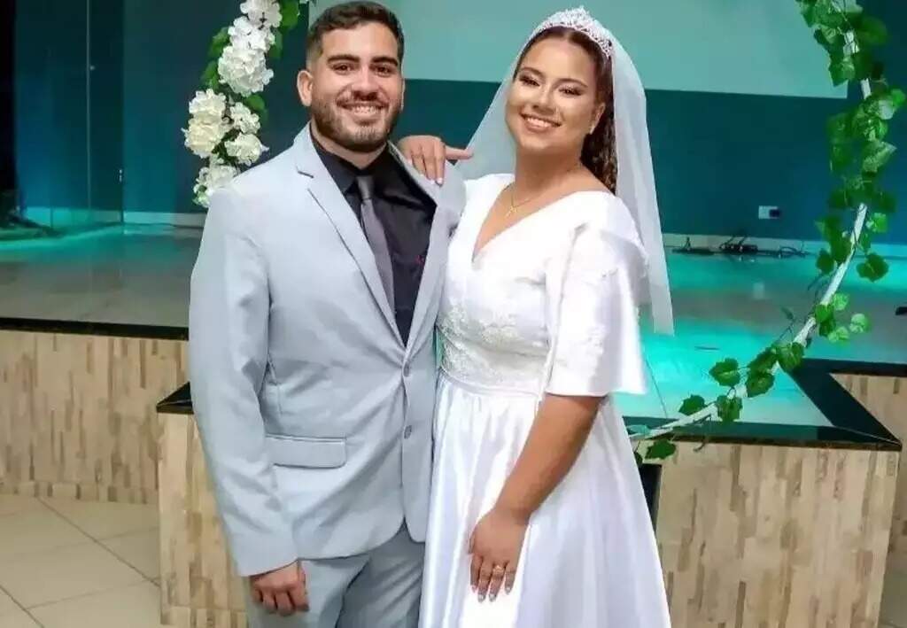 Letícia Machado Gonçalves, de 19 anos, em foto com o marido no dia do casamento, pouco mais de um ano antes do acidente (Foto: Reprodução das redes sociais)