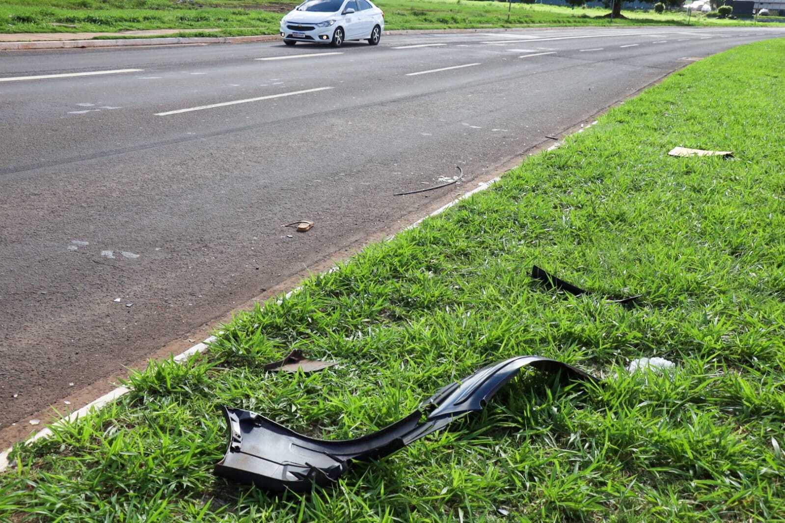 Partes do carro ficaram no local do acidente. (Foto: Henrique Kawaminami)