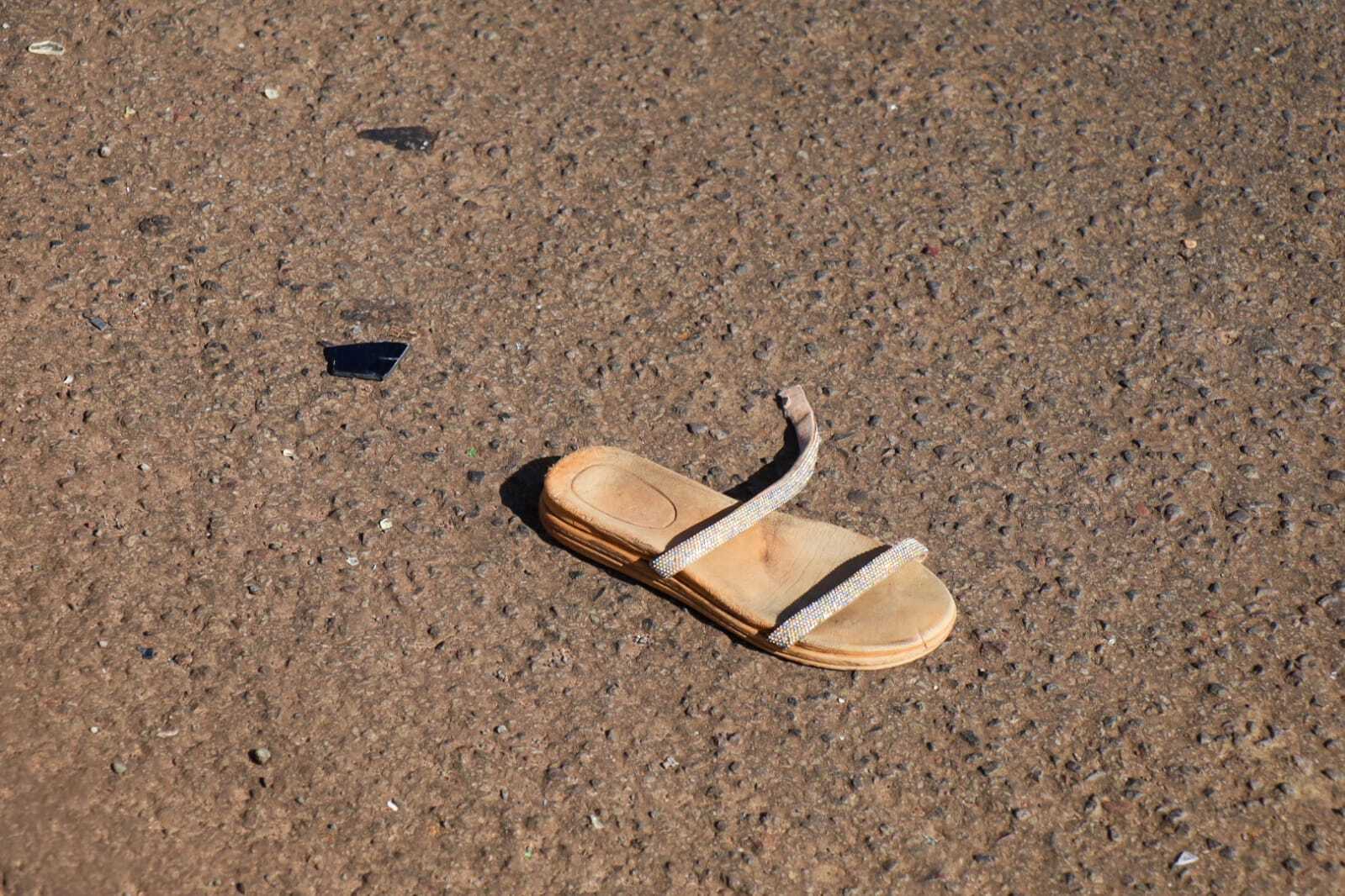 Sapato da vítima foi encontrado nesta manhã no local do acidente. (Foto: Henrique Kawaminami)