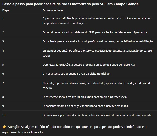Na prática, o município está dizendo quem faz o documento, quando faz e em quanto tempo. O parecer social serve para confirmar se a pessoa que pediu a cadeira motorizada realmente tem condições de usar o equipamento no dia a dia, com segurança.