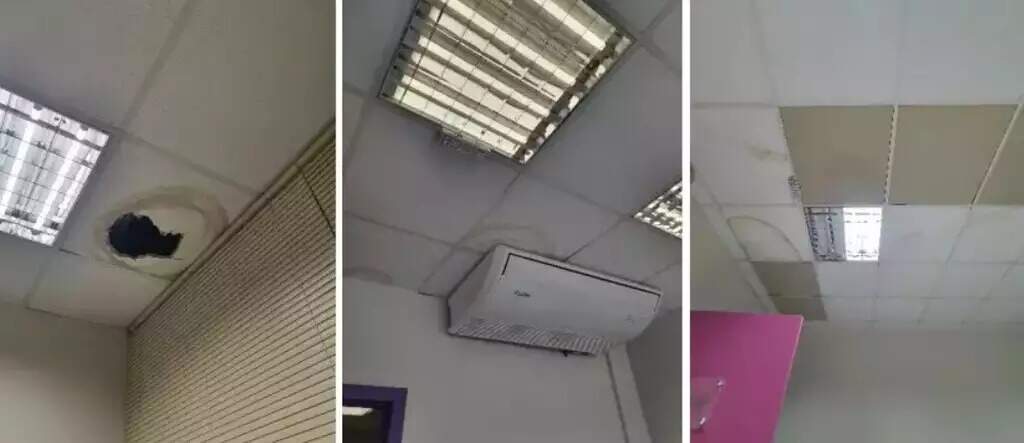 Imagens de infiltração no teto do prédio que fazem parte do processo de licitação (Foto: Divulgação PMCG)