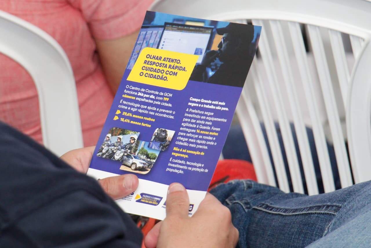 Empresário segura flyer distribuido em evento que debate a retomada do Centro campo-grandense. (Foto: Juliano Almeida)