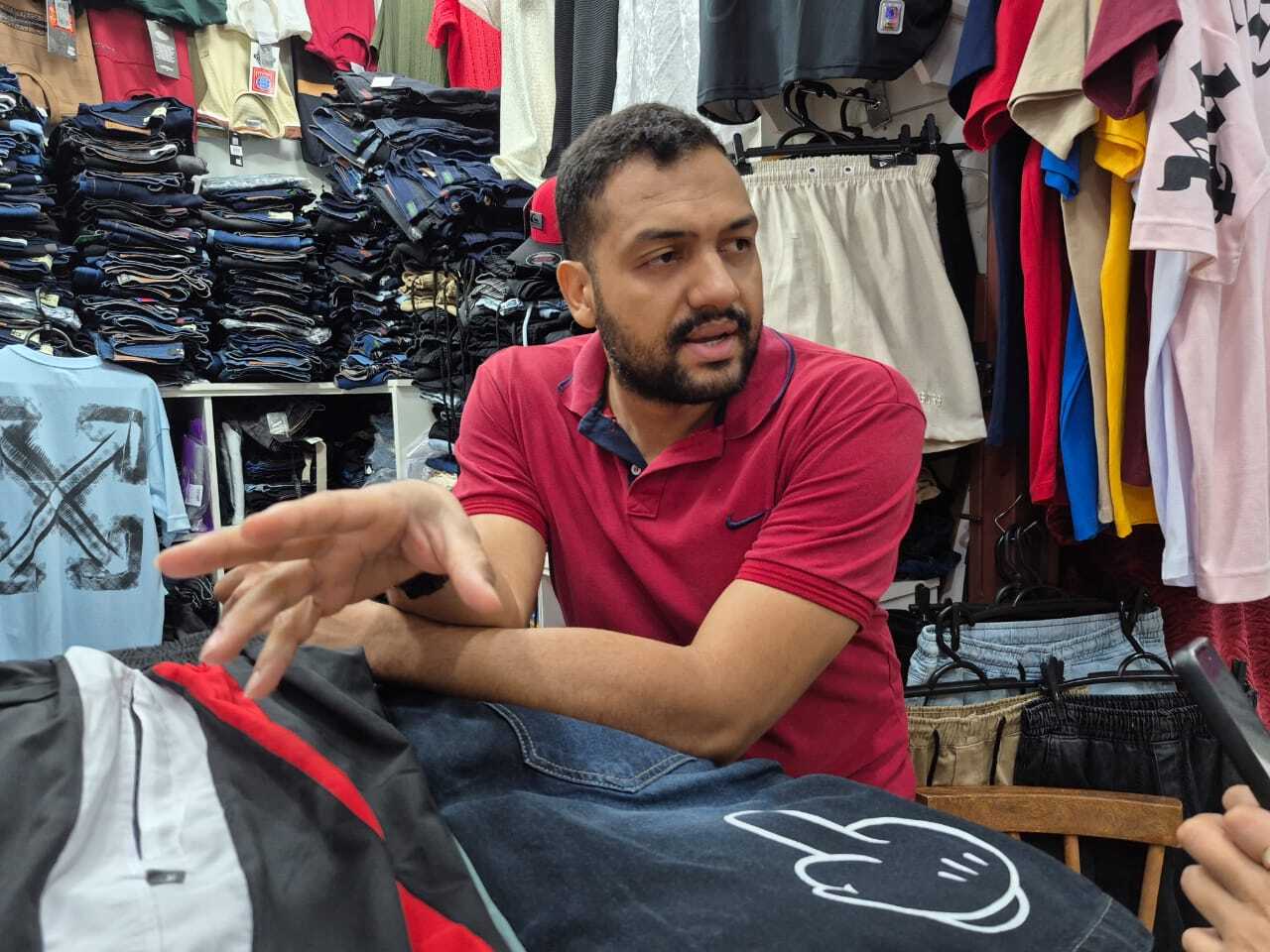 Leandro Silva Araújo, vendedor em loja de roupas, conta que o movimento caiu, mas a esperança é de melhorar a partir de sexta-feira, quando é pago o 13º salário.