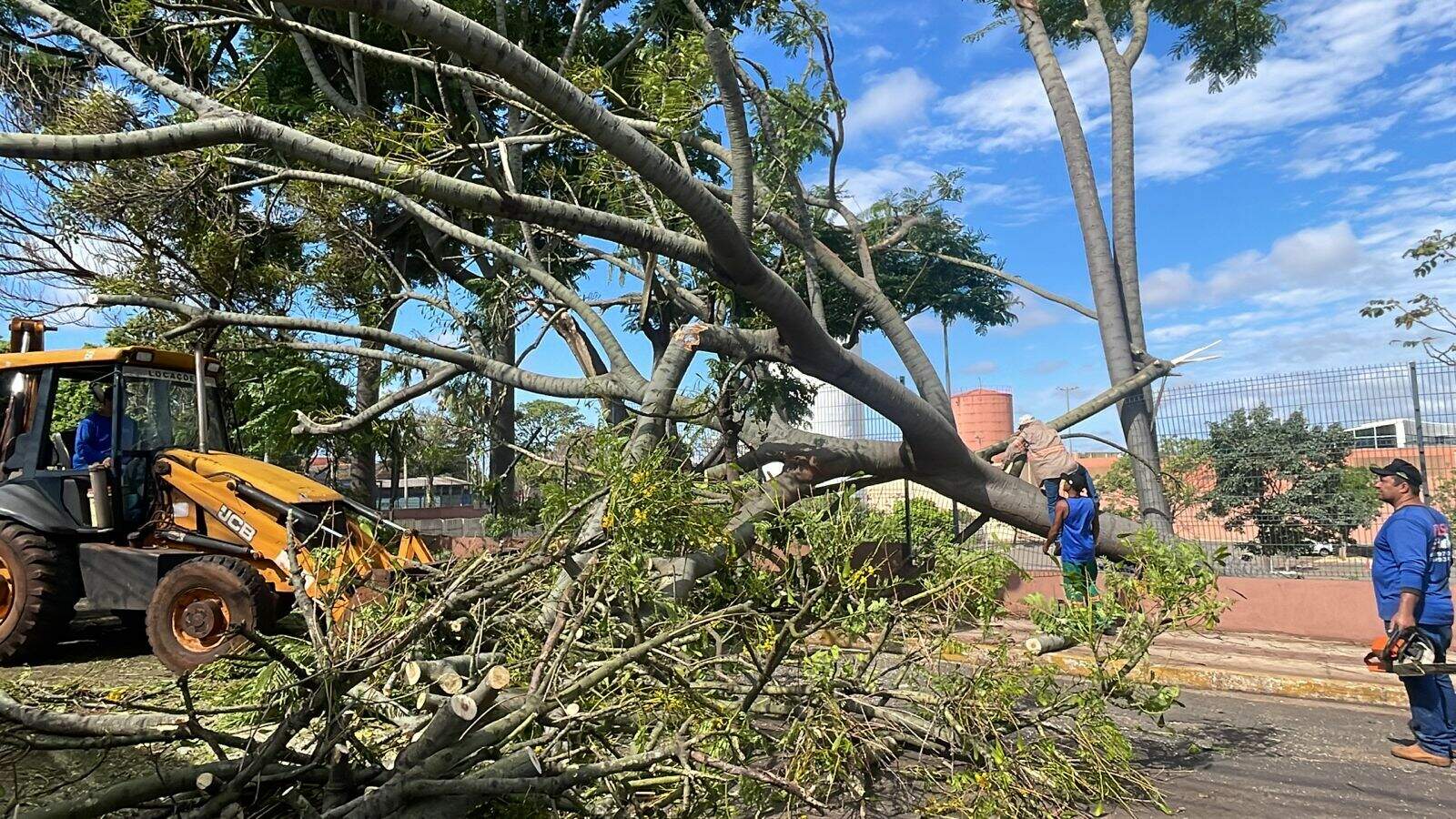 Outra árvore foi arrancada pela raiz na Rua Lília Oshiro, entre a Avenida Mato Grosso e a Rua Antônio Maria Coelho, bloqueando parcialmente o trânsito. A Energisa e o Corpo de Bombeiros informaram que ainda não há balanço consolidado das ocorrências registradas na cidade.