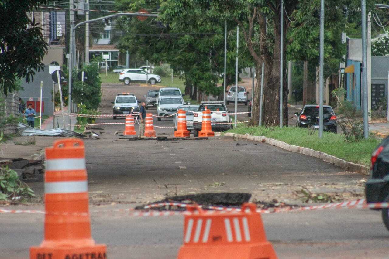Caso - Na terça-feira (6), cerca de uma hora e meia de chuva intensa provocou danos na Avenida Rachid Neder. Conforme dados do meteorologista Natálio Abrão, foram registrados 38 milímetros de chuva em bairros da Capital. Ainda no fim da tarde, equipes da Agetran (Agência Municipal de Transporte e Trânsito) estiveram no local para interditar o trecho afetado.