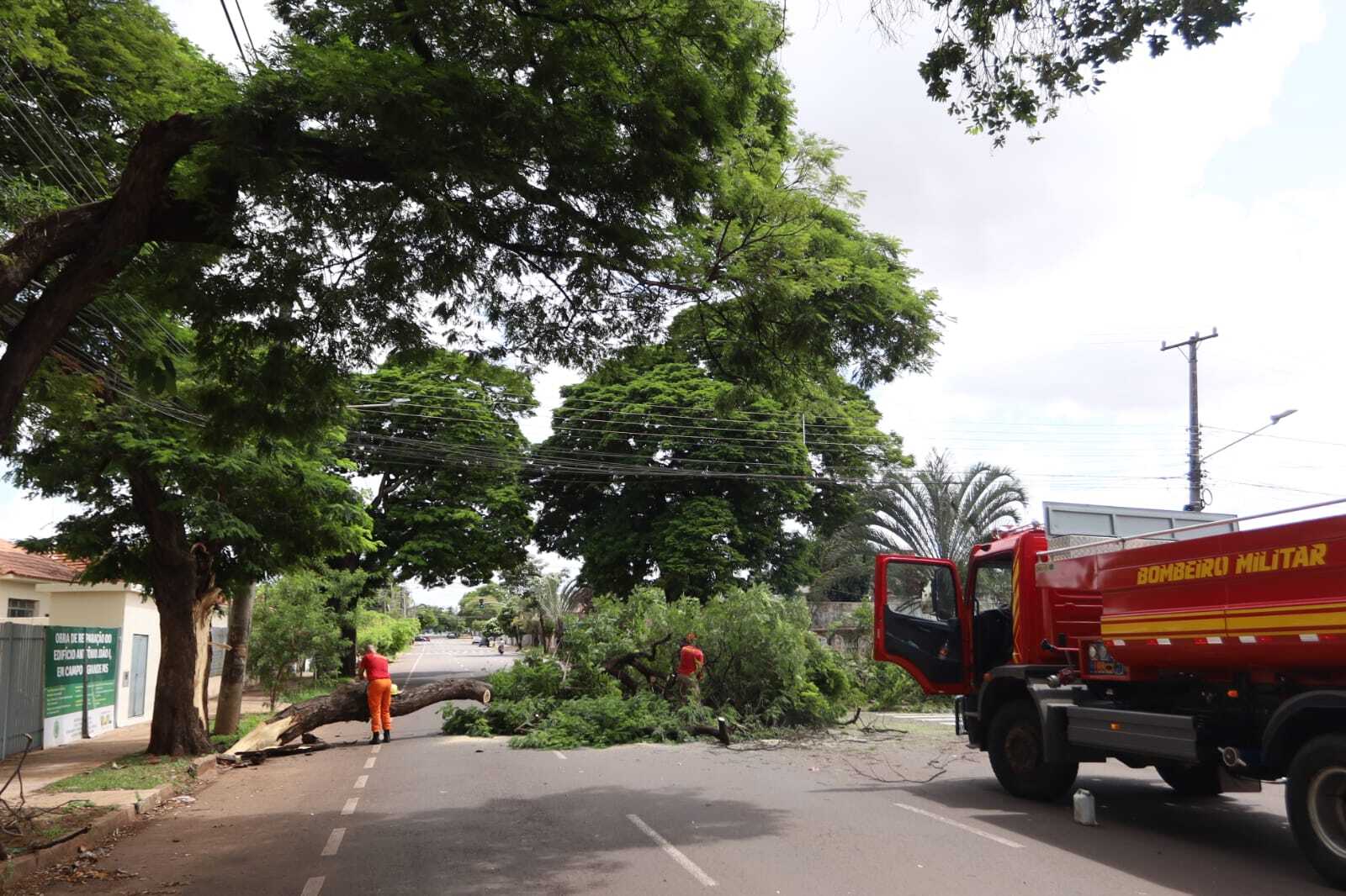 Uma árvore interditou o trânsito na Avenida Joaquim Dornellas, no Bairro Amambaí. A informação do Corpo de Bombeiros é que a queda aconteceu entre 4h30 e 5h, tendo como causa provável o tronco oco, que não suportou o peso dos galhos.