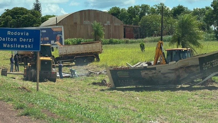 A Prefeitura de Sidrolândia iniciou a retirada de outdoors instalados às margens da BR-060, no trecho urbano de Sidrolândia, alegando irregularidade na ocupação da faixa de domínio da rodovia.