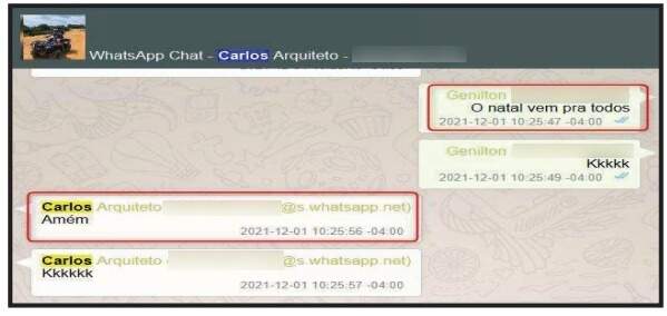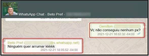 Em resposta, Genilton agradeceu e comunicou que iria a Bonito na segunda-feira, 13 de dezembro de 2021. Para os investigadores, essa visita “estava relacionada às negociações para o pagamento de propina ao agente público”.