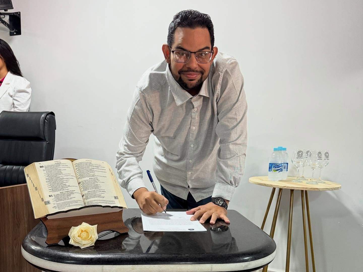 Michell Bruno Medeiros de Almeida ao tomar posse na Câmara Municipal de Inocência (Foto: Reprodução)