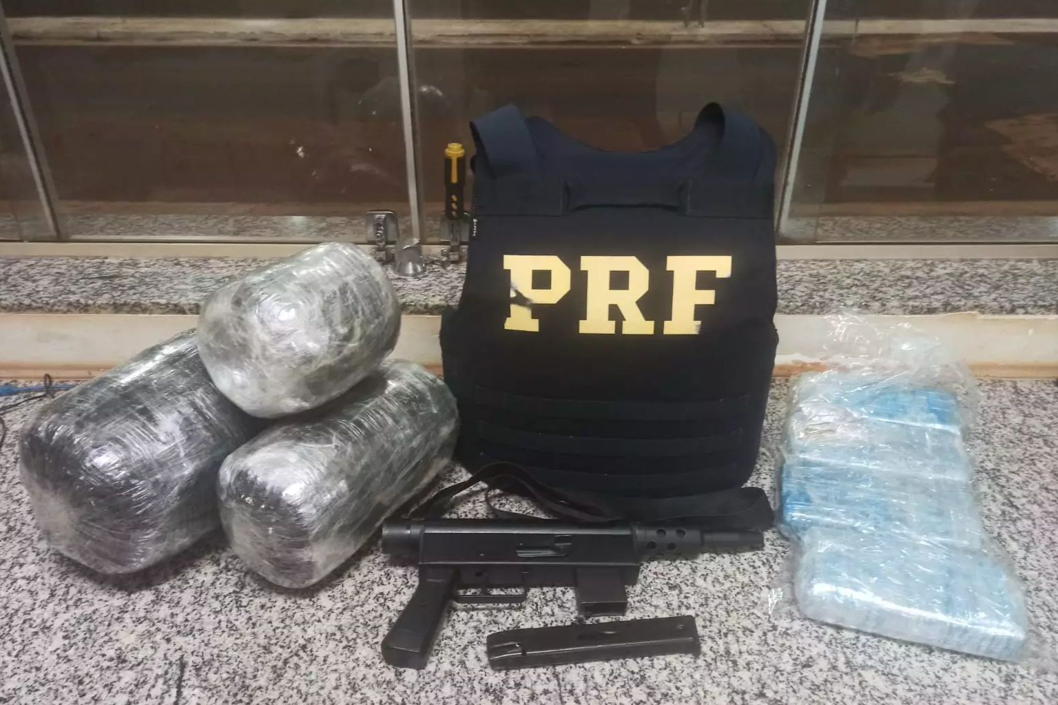 Um homem de 31 anos, natural de Alagoas, foi preso pela Polícia Rodoviária Federal (PRF) transportando drogas e armamento em um ônibus na BR-463, em Ponta Porã. A prisão ocorreu durante fiscalização de rotina no domingo (5). Na inspeção das bagagens do suspeito, que seguia para Campo Grande, foram encontrados 4,15 kg de cocaína, 5,65 kg de haxixe e uma submetralhadora sueca calibre 9 mm. O homem confessou que levaria o material até Três Lagoas. Todo o material apreendido foi encaminhado à 1ª Delegacia de Polícia Civil de Ponta Porã.