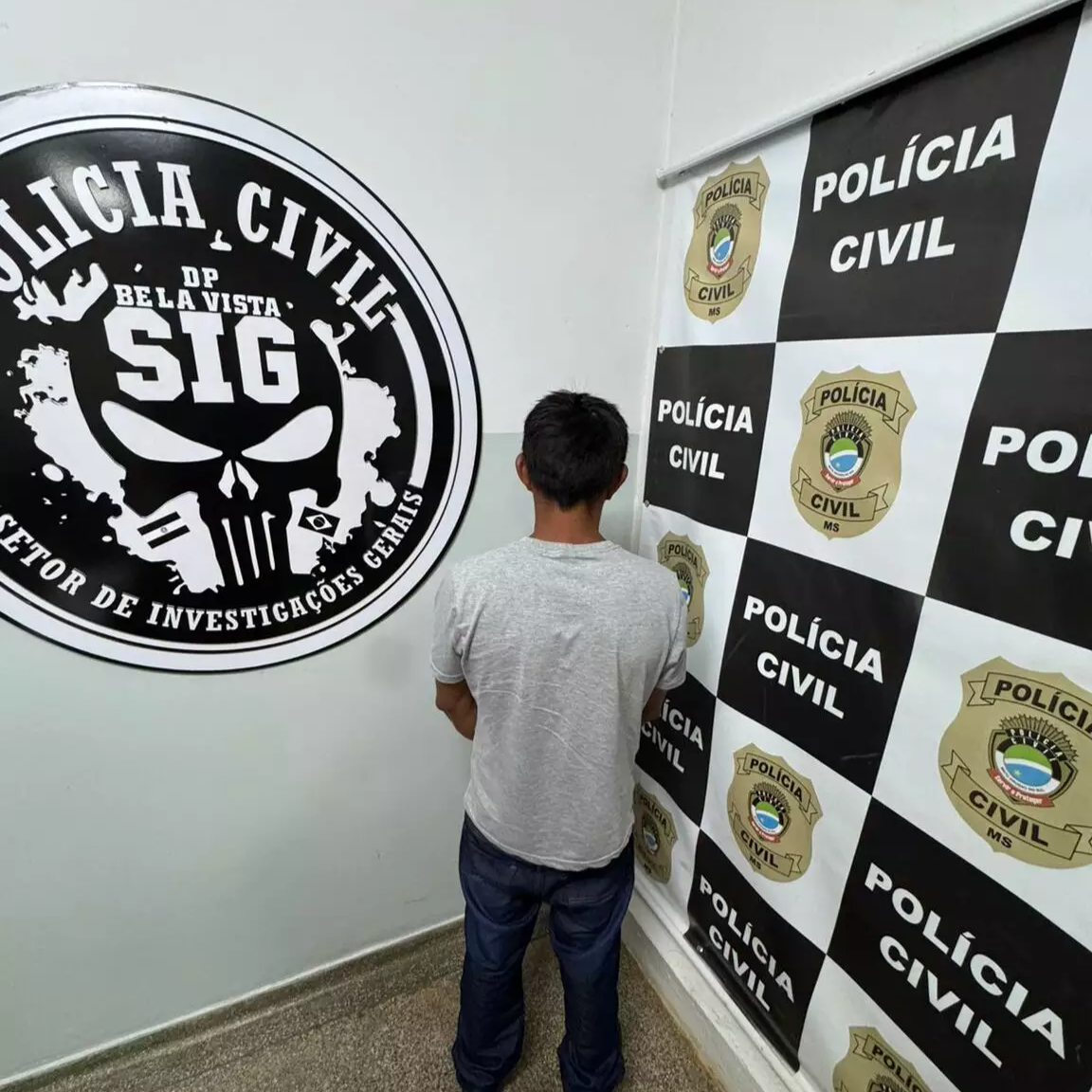 Suspeito preso na delegacia de Bela Vista (Foto: Divulgação PCMS)