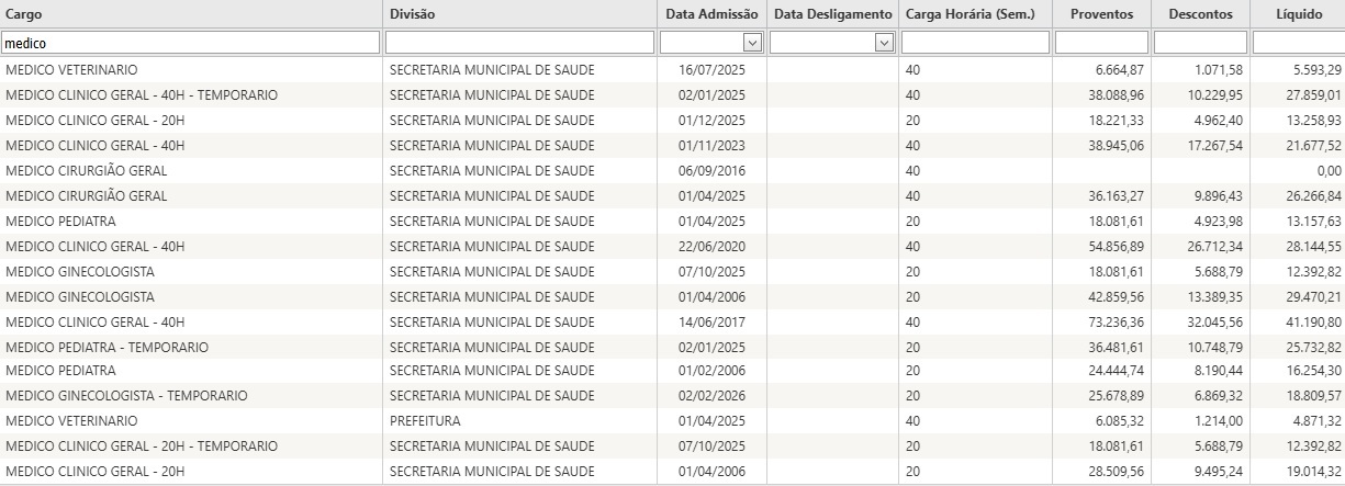 Pesquisa no Portal da Transparência mostra que no mês de fevereiro deste ano, um dos médicos, que é concursado, recebeu R$ 73,2 mil pelo período de 40 horas semanais. O profissional atua no município desde 2017.