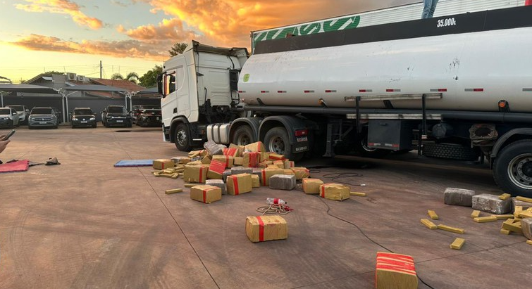 A Polícia Federal prendeu um motorista transportando oito toneladas de drogas em Água Clara, a 193 quilômetros de Campo Grande. A apreensão ocorreu durante operações de combate ao tráfico, após trabalho de inteligência identificar um veículo suspeito. Durante a abordagem, os agentes encontraram entorpecentes, uma arma de fogo de calibre restrito e munições escondidos em compartimento adaptado no tanque da carreta. O condutor poderá responder por tráfico transnacional de drogas e tráfico internacional de arma de fogo.