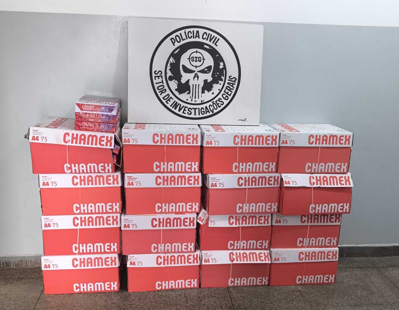 A Polícia Civil de Corumbá prendeu três pessoas suspeitas de participar de um esquema de desvio e venda de papel A4 da Prefeitura Municipal. Foram apreendidas 16 caixas, avaliadas em R$ 6 mil, que eram comercializadas em redes sociais e comércios locais. Entre os detidos estão um servidor municipal e dois comerciantes. O material era oferecido em grupos de compra e venda na internet com preços abaixo do mercado. Os suspeitos foram autuados em flagrante e responderão por crimes contra a administração pública e o patrimônio.