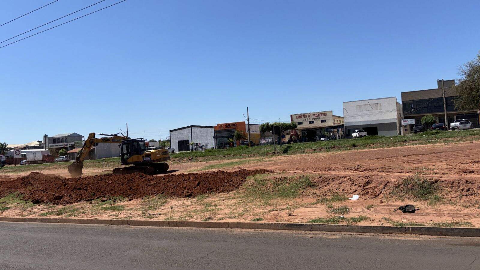 Com o uso de tratores, valas estão sendo abertas no entorno da BR-262. A obra tem como finalidade prevenir inundações na cidade.