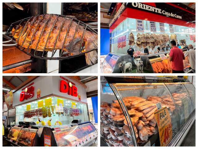 A variedade se estende ainda às peixarias, que nesta época ficam repletas de delícias e muito procuradas. Entre os destaques está o tradicional pacu recheado e pronto para assar, um clássico regional que não pode faltar na mesa.