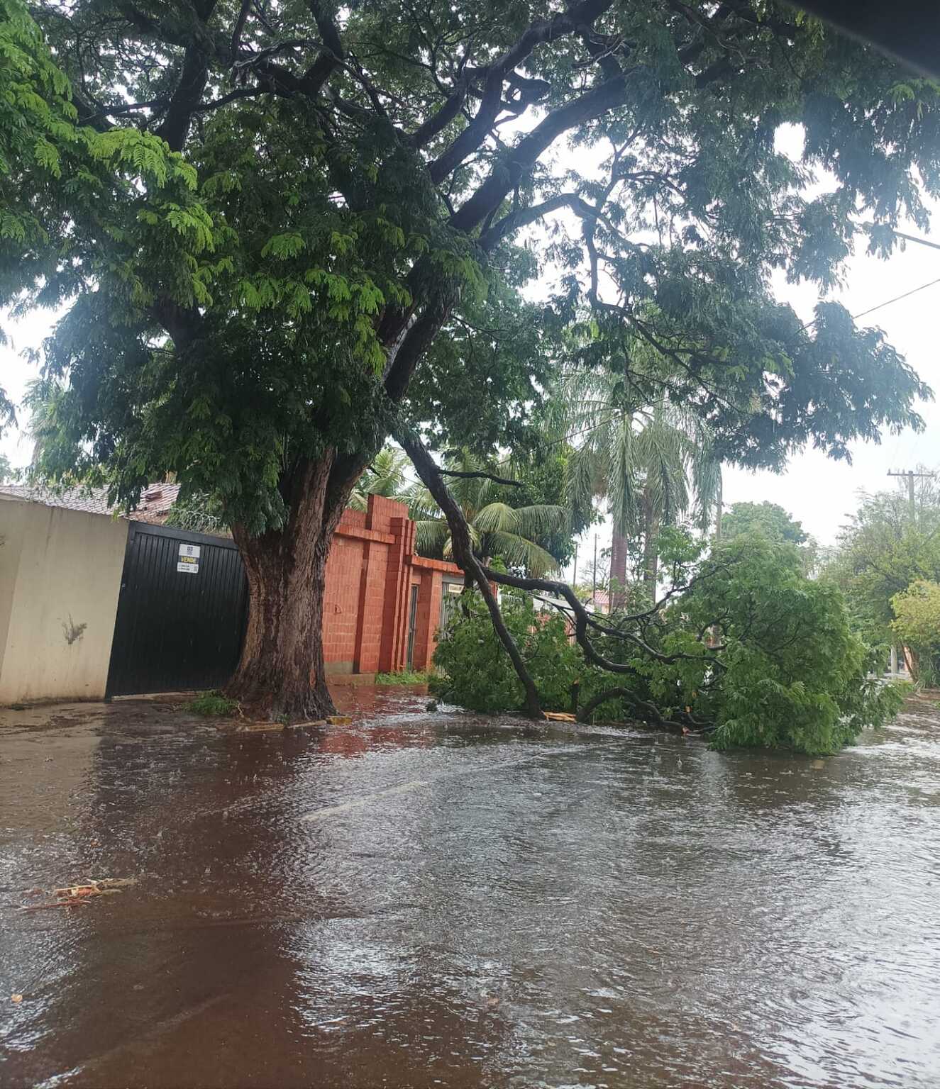 Uma chuva intensa e rápida causou transtornos em Campo Grande neste domingo (26), provocando alagamentos em diversos bairros e queda de árvores. No bairro Santo Amaro, moradores registraram a força das águas, enquanto na Vila Alba uma árvore caiu na Rua Silveira Martins, bloqueando parcialmente a via. O Cemtec previu tempestades com raios, rajadas de vento e possível queda de granizo para a região. O Instituto Nacional de Meteorologia emitiu alerta de perigo para 47 cidades do estado, com previsão de precipitações entre 30 e 60 mm/h, podendo atingir 100 mm/h em algumas localidades.