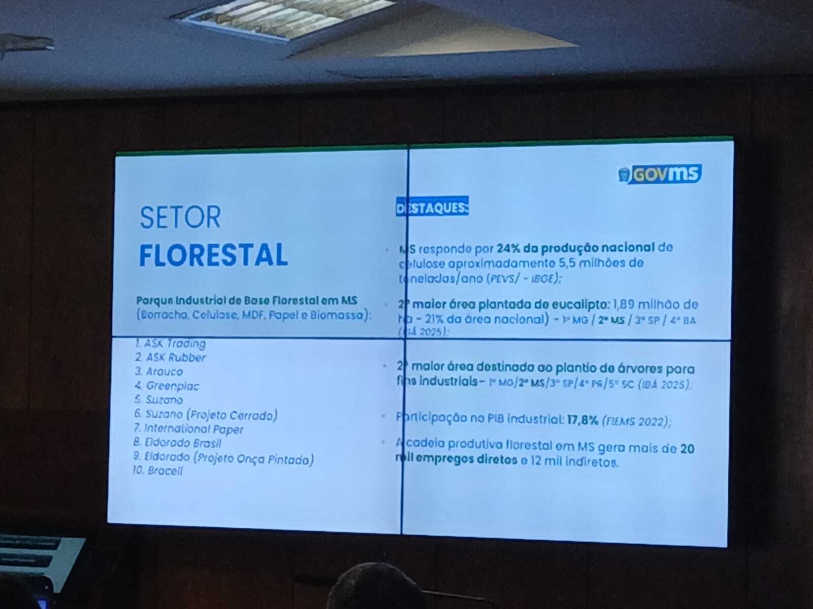 Entidades do setor tentaram amenizar críticas sobre o impacto do eucalipto nas bacias hidrográficas e em questões sociais. O diretor de Relações Institucionais da Indústria Brasileira de Árvores (Ibá), José Carlos de Fonseca Júnior, declarou que as empresas investem em produtividade e certificações internacionais. O secretário-executivo de Desenvolvimento Econômico Sustentável de MS, Rogério Beretta, afirmou que o setor opera com sustentabilidade e que o Estado mantém a meta de carbono neutro até 2033.