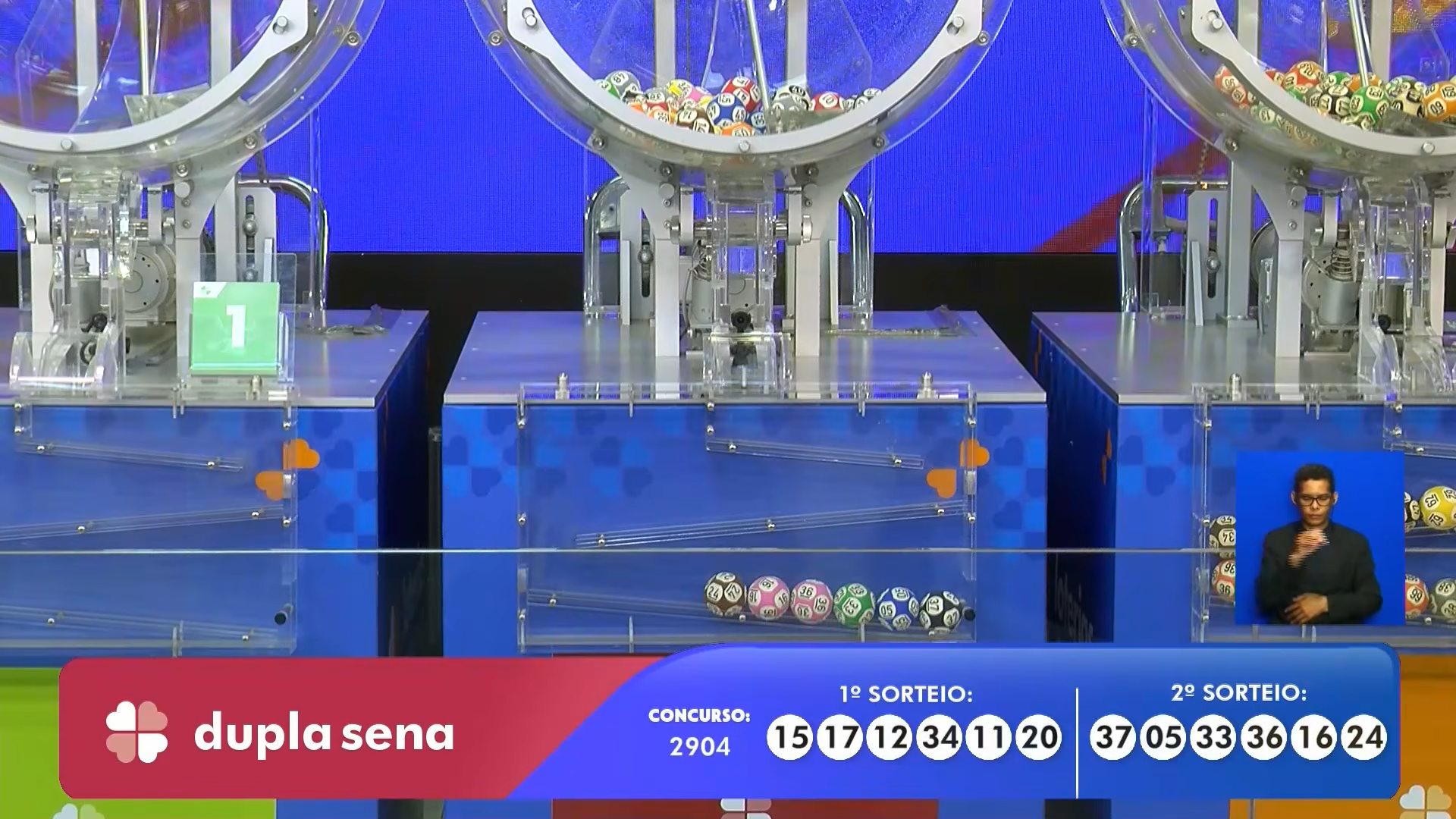 | Dupla Sena (2.904) | R$ 4.965.774,17 R$ 74.933,12 | 1º sorteio: 11, 12, 15, 17, 20, 34; 2º sorteio: 5, 16, 24, 33, 36, 37 |