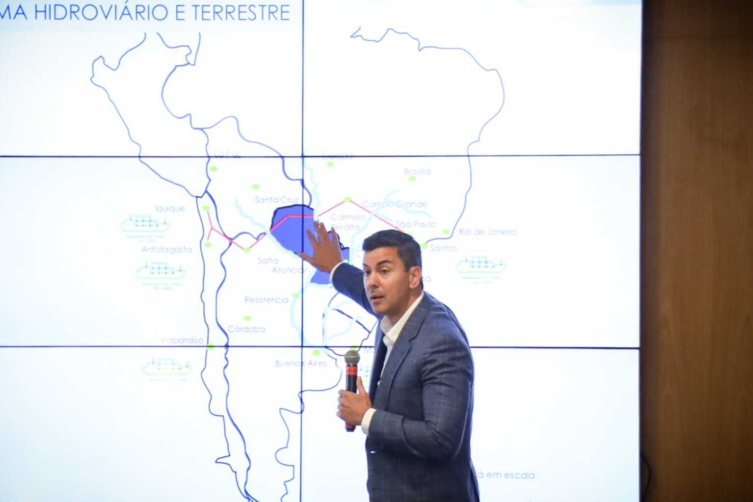 O tema foi discutido na manhã desta quinta-feira, em um encontro na sede da Fiems (Federação das Indústrias de Mato Grosso do Sul), com o presidente do Paraguai, Santiago Peña, que veio ao Estado exatamente para estreitar laços durante dois dias de visita, iniciada com uma inspeção às obras da ponte sobre o Rio Paraguai. A estrutura será a ligação do Brasil à Rota Bioceânica, criando um corredor até portos chilenos no Oceano Pacífico.