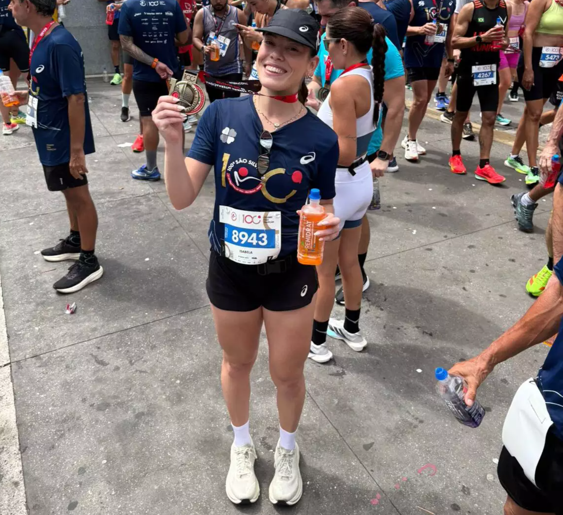 Neste ano, Isabela entrou em um ciclo de meia maratona e depois voltou aos treinos com foco na São Silvestre. A prova tem percurso de 15 quilômetros, concluído por ela em 1h25. “A São Silvestre é sobre energia e sobre fechar o ano celebrando as corridas que fizemos”, resumiu.