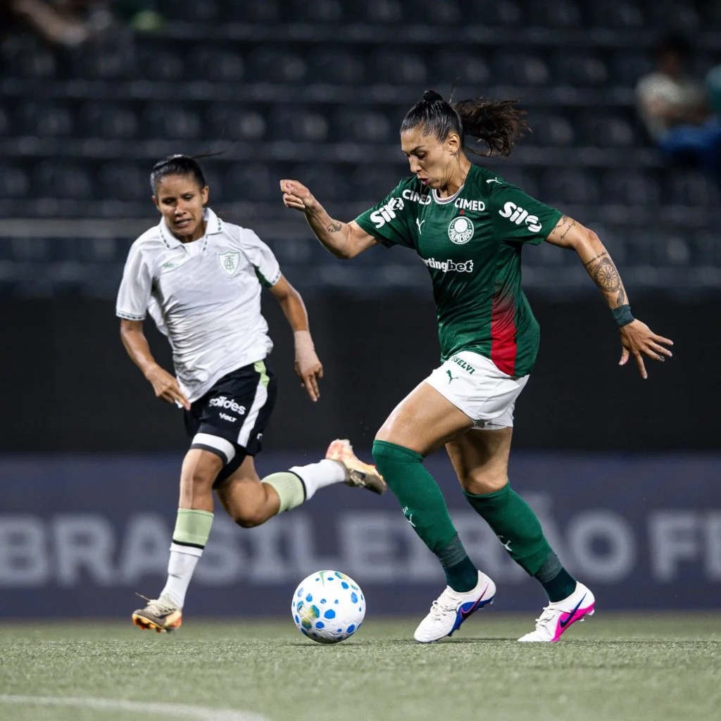 Palmeiras venceu o América-MG por 4 a 0 na noite desta sexta-feira (13), na Arena de Barueri (SP), pela primeira rodada do Campeonato Brasileiro Feminino. Brena Carolina marcou duas vezes, enquanto Bia Zaneratto e Duda Santos completaram o placar. O resultado garantiu os três primeiros pontos ao time na competição nacional.
