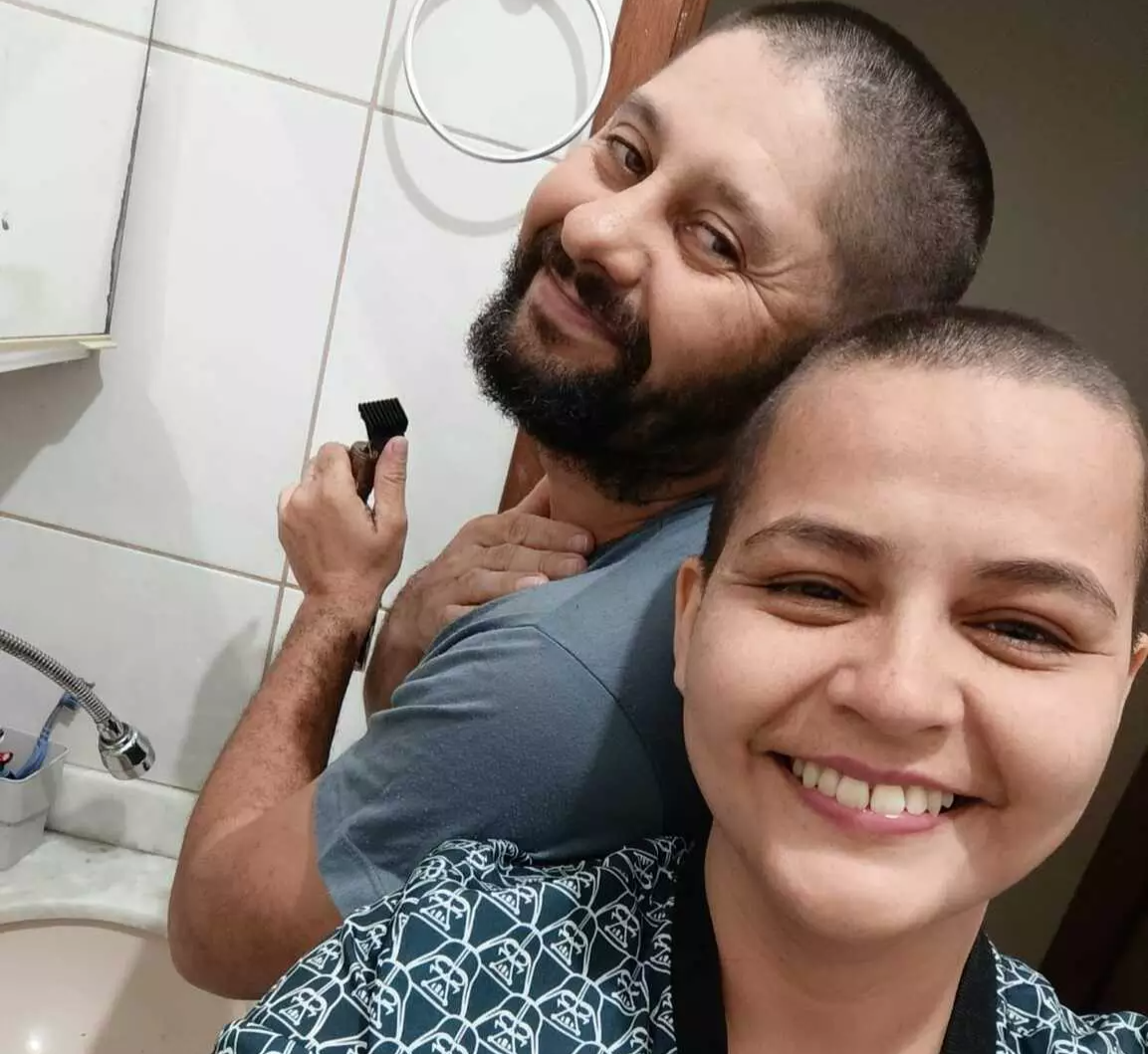 O diagnóstico veio em julho de 2024, justamente no dia do aniversário do marido. “O médico folheou os papéis e disse que era um câncer maligno, muito agressivo, com 95% de agressividade. Quando ouvi a palavra câncer, eu desabei. Liguei chorando para a minha mãe”, lembra.