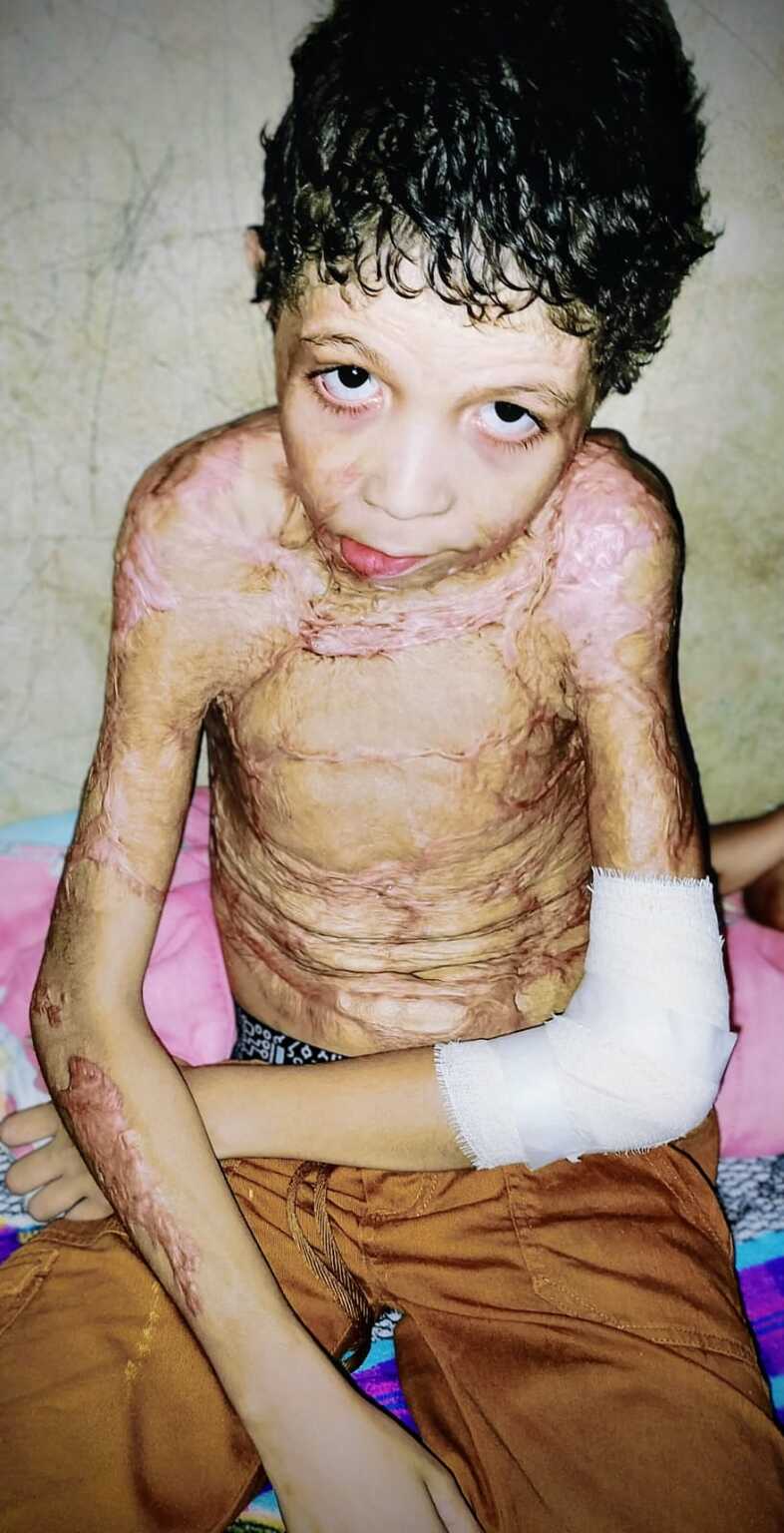 O menino sofreu queimaduras de segundo e terceiro grau em 40% do corpo. Ficou internado por 63 dias, sendo 33 em coma na UTI. Desde então, passou por várias cirurgias de enxerto e por uma intervenção no pescoço. Continua em acompanhamento no ambulatório da Santa Casa.