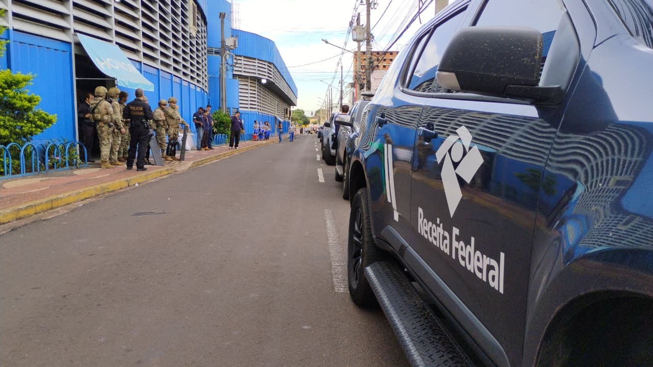 A Polícia Federal e a Receita Federal realizaram operação no Camelódromo de Campo Grande (MS) nesta quarta-feira (18), resultando no fechamento de quatro boxes e apreensão de diversos produtos contrabandeados. A ação faz parte da Operação Iscariotes, que investiga esquema milionário de comércio irregular. A operação resultou no bloqueio de R$ 40 milhões em bens dos investigados e revelou o envolvimento de agentes de segurança pública. Entre os alvos estão pai e filho, proprietários de boxes no local, e policiais que auxiliavam no esquema fornecendo informações sigilosas e transportando mercadorias ilegais.