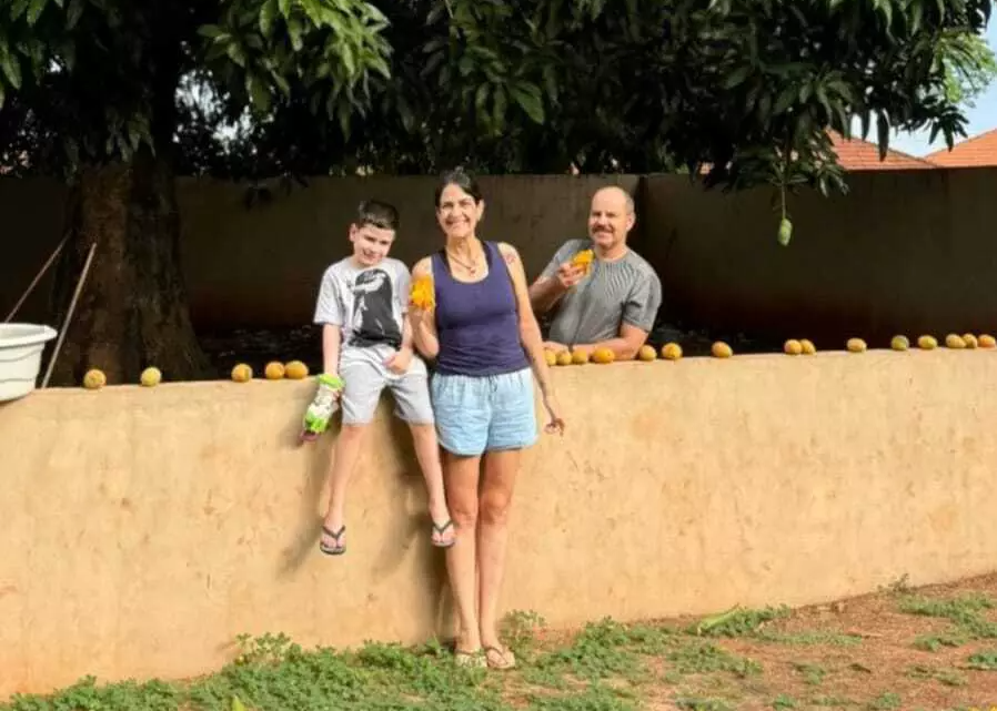 Fernanda é mãe de três filhos que ajudam e reclamam de tantas mangas no quintal. Apesar do trabalho, todos ficaram felizes com as pessoas querendo as frutas que dão aos montes pela cidade.