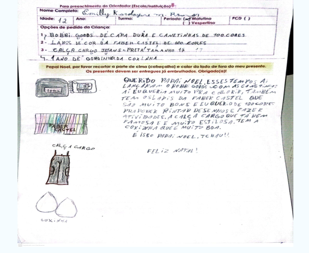 Este ano, já são mais de 5,5 mil cartas recebidas em Mato Grosso do Sul. Entre as crianças que participaram do lançamento estava Kimberly Larissa de Almeida Rodrigues, de 9 anos, aluna do quarto ano. Ela não precisou pensar muito antes de escrever.