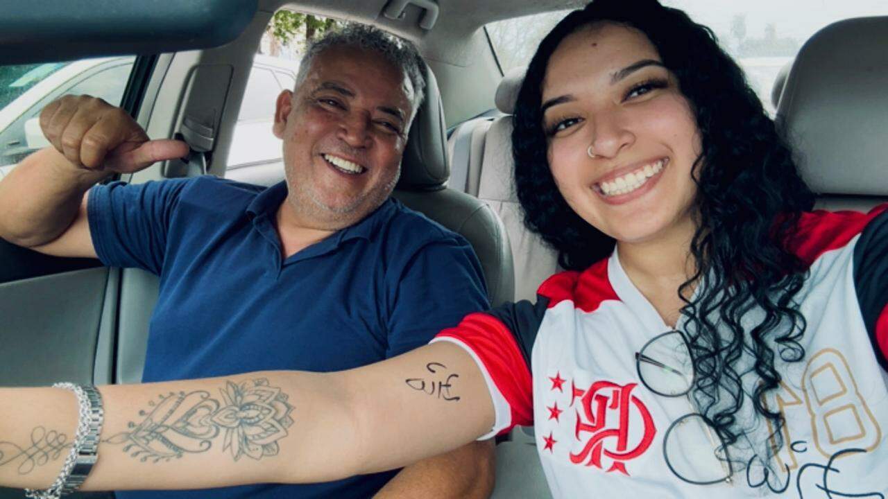 Millena e o pai foram juntos até o aeroporto encontrar Zico.  (Foto: Arquivo Pessoal)
