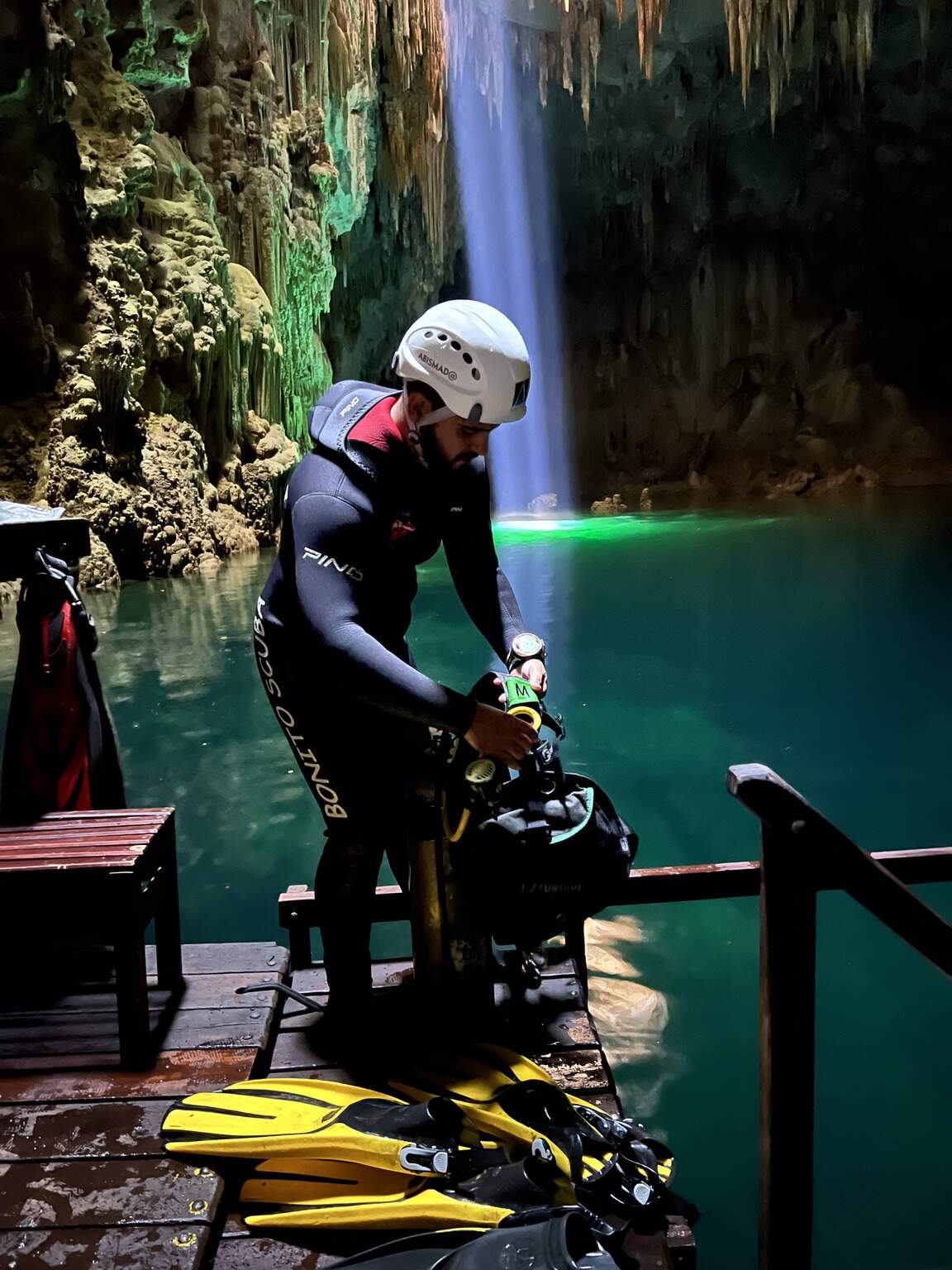 Guia mostra caverna com “luz divina" no Abismo Anhumas