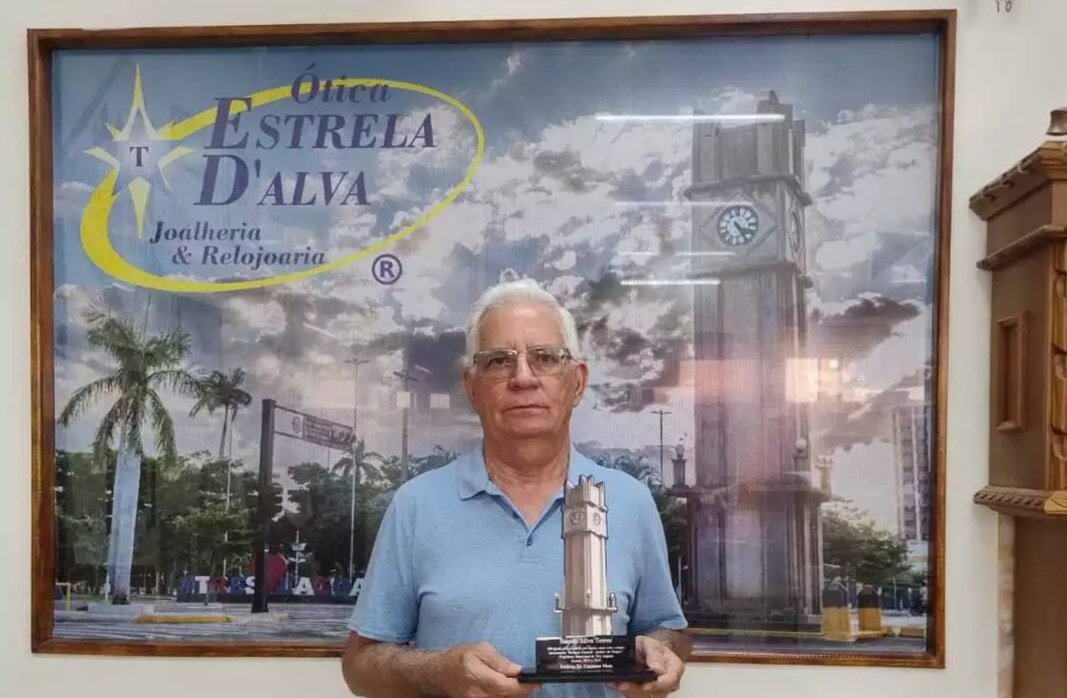 Sueide Silva Torres, de 72 anos, quase nasceu dentro de um relógio. A licença poética vem do tempo que mexe com relíquias antigas e pela profissão que foi passada do avô para o filho e, ainda na infância, para o neto. Hoje, ele é o responsável por dar corda ao relógio histórico apelidado de “O Senhor do Tempo”, da Praça da Bandeira, em Três Lagoas.